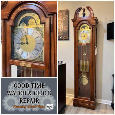 "Reconditioned." Clock has been serviced and is running extremely well. Comes with a 1-year warranty from GOOD-TIME Watch & Clock Repair.